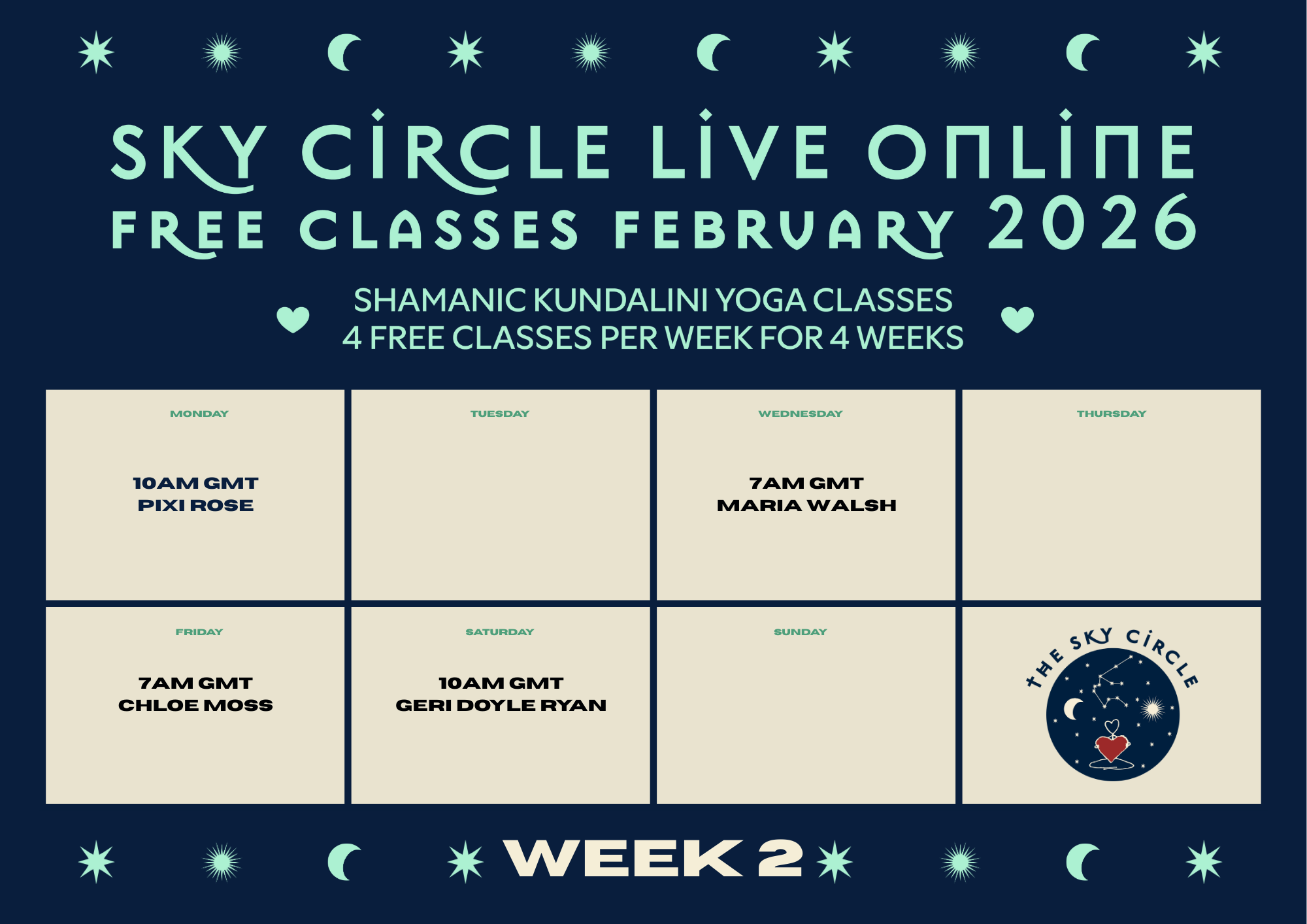 The next class is this morning at 10am GMT with the incredible Pixi Rose, joining us live from Cheshire, followed by a beautiful line-up of inspiring teachers in the following weeks