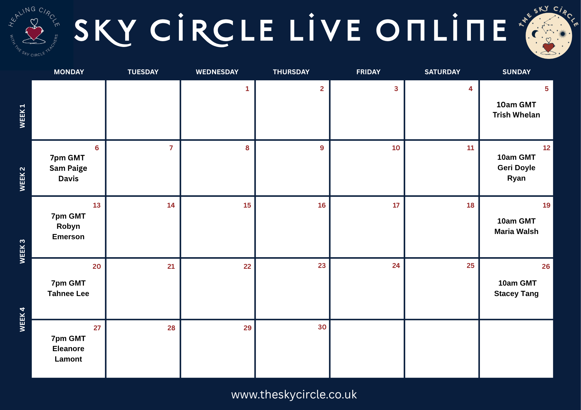 Classes will be Sunday Mornings and then we will resume the beautiful Healing Circles on Monday evenings at 7pm GMT / 8pm GMT.